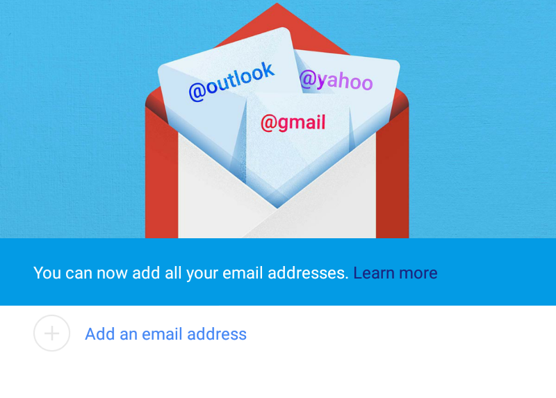 If you don't already have an account set up, the Welcome to Gmail screen appears. Tap Skip, then Add an email address.